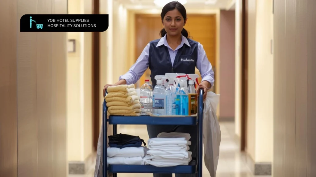 These are the backbone of daily operations. Housekeeping supplies include cleaning chemicals, microfiber cloths, mops, trolleys, PPE (gloves, masks), and other tools. A tidy, efficient housekeeping cart ensures that your staff can provide consistent service.