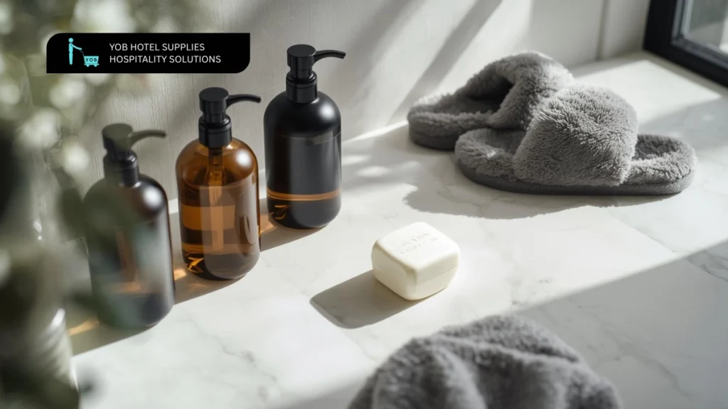 These items — like shampoo, conditioner, body wash, lotion, slippers, vanity kits — are what guests use every day. The trend in 2025 is toward sustainable toiletries: biodegradable packaging, refillable dispensers, and plant-based ingredients.